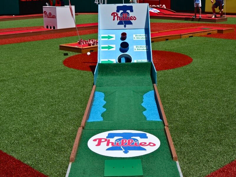 We were honored to be chosen once again by the Philadelphia Phillies for their 2025 Fan Experience in creating a custom 9 hole mini golf course rental for a lucky fan and his & her friends to play mini golf with two current Philadelphia Phillies players. The Phillies organization auctions off this experience to raise funds for location charities and it is done before a home game during the summer months.
